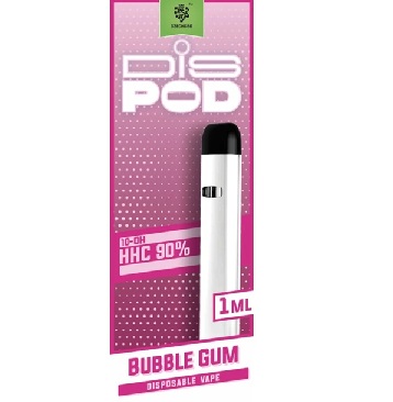 DisPOD flavored with Bubble Gum and with 90% hemp extract 10-OH-HHC. This is a small disposable electronic e-cigarette adapted for vaping. With these vapes, you exhale a smaller amount of vapor than with traditional vaporizers.